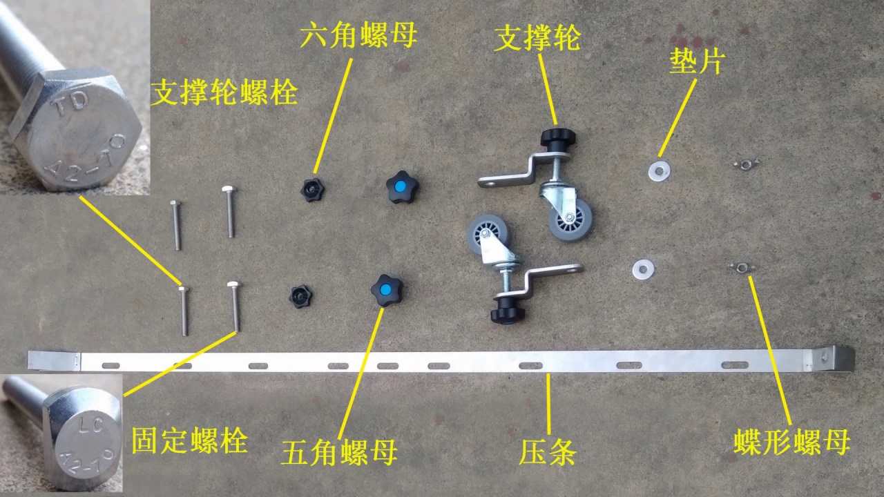 2.安裝兩個(gè)固定螺栓和兩個(gè)支撐輪螺栓