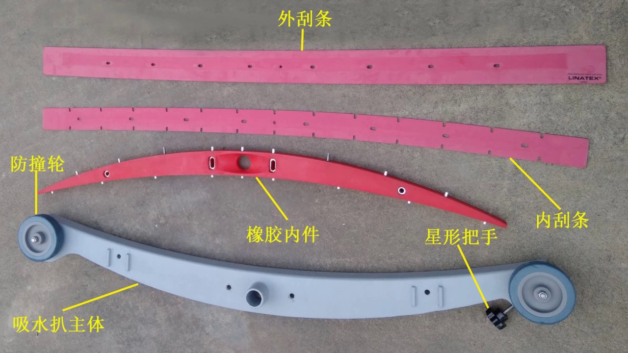 1.安裝內(nèi)刮條,對準(zhǔn)內(nèi)刮條的孔,一一按進(jìn)橡膠內(nèi)件